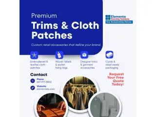 With custom cloth patches and hang tags, we support brands across global fashion markets. Connect with Tim Koo today at TrimsAndPackaging@elementsbs.com or call 647-977-8802.
