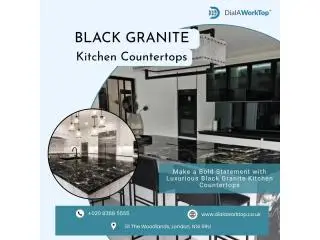 Transform your kitchen with black granite countertops from DialAWorkTop. We offer custom designs, premium materials, and professional installation to create stunning, long-lasting surfaces. Known for its strength and sleek appearance, black granite is perfect for adding a sophisticated touch to any space.