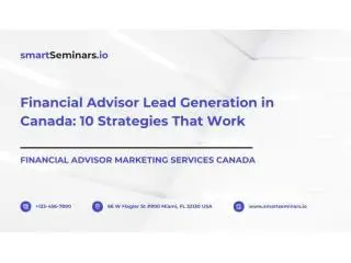 Financial Advisor Marketing Services Canada: Discover 10 proven lead generation strategies for advisors to attract high-quality clients and grow their practice. Learn how targeted marketing, educational content, and digital systems create consistent results. Build a reliable pipeline with expert guidance. Contact Smart Seminars to start generating qualified leads today.