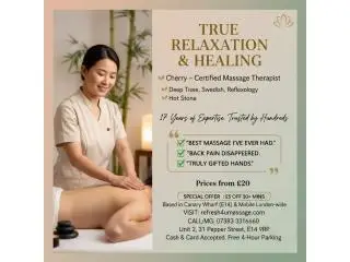 Relax & Heal with Expert Deep Tissue & Swedish Massage in London E14Health Beauty Fitness - - November 6, 2025Experience true relaxation and healing with Cherry, acertified Asian British massage therapist offering 17 years of professional experience in multiple therapeutic techniques. Cherry specializes indeep tissue massage,Swedish massage,reflexology, andh...