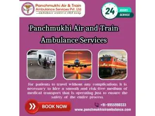 Panchmukhi Air and Train Ambulance in Chennai is a totally safe choice to shift the patient with the advanced medical setup during a serious medical case. During a medical crisis, you can obtain the finest Air and Train Ambulance Service in Chennai at an inexpensive cost with perfect medical assistance.