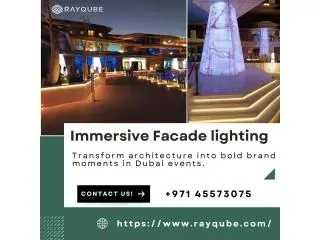 Enhance brand visibility with advanced lighting solutions designed for modern events and activations across UAE. Immersive facade lighting UAE combines AI, sensors, and projection mapping to create interactive building visuals. Rayqube provides end-to-end solutions from concept to installation, delivering engaging experiences that connect brands with audiences effectively.