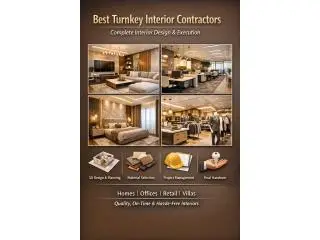 We are one of the best turnkey interior contractors offering complete interior design and execution solutions for residential and commercial spaces. From concept planning and 3D designs to material selection, project management, and final handover, we handle everything under one roof. Our expert team ensures high-quality workmanship, timely delivery, and cost-effective solutions tailored to your needs. Whether it’s homes, offices, retail spaces, or villas, we deliver hassle-free turnkey interior services with a focus on functionality, aesthetics, and long-lasting results.