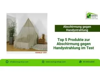 5 wirksame Produkte zur Abschirmung gegen Handystrahlung im AlltagServices - Berlin (Berlin) - January 20, 2026Effektive Abschirmung gegen Handystrahlung für Zuhause, Büro und unterwegs. Produkte, Tipps und persönliche Beratung vom Experten unter +49(0)62429136149. info@esmog-shop.com Mo:- +49(0)62429136149 Unser Service:- Abschirmung gegen Han...